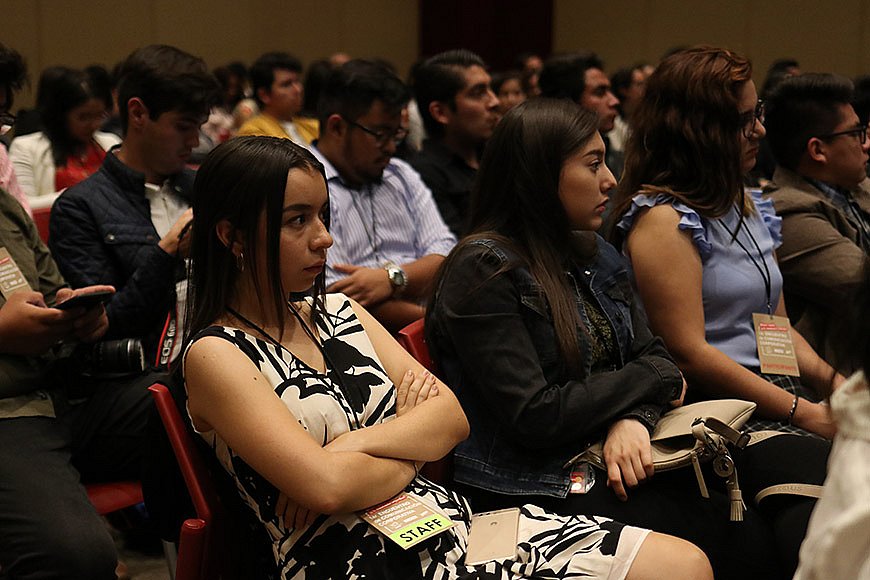 La Mtra. Ana Cristina Gómez Vallarta, directora de la Escuela de Comunicación y Medios Digitales, dio la bienvenida a estudiantes y profesores, a quienes recordó la importancia de asistir a este tipo de eventos que son de utilidad para enfrentar mejor las circunstancias que se presentan dentro del ámbito laboral.