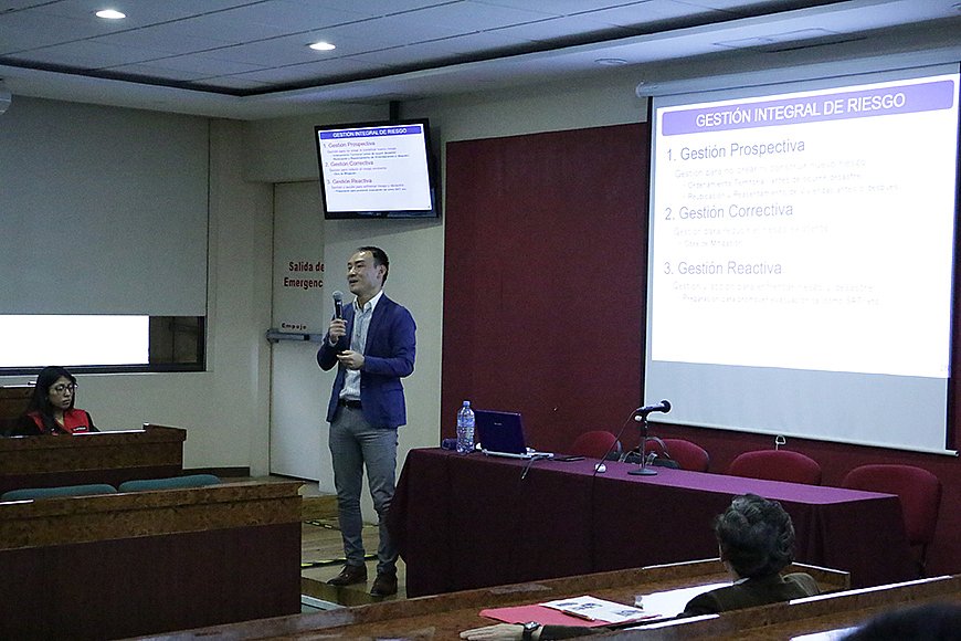 De esta forma, el profesor Kawajigashi comentó que, aunque en Japón la población se encuentra concentrada en zona de riesgo, ya que el 70% del territorio es zona montañosa y el 30% es territorio plano, se han realizado varias represas para evacuar los caudales de los ríos principales de la región, así como acotar diferentes medidas para enfrentar los desastres; sin embrago, el principal enfoque del país está en la construcción de obras para tratar de evitar problemas, estrategia que se conoce como distribución de riesgo.