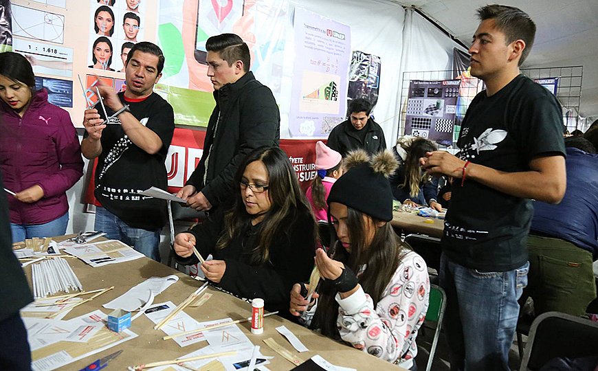 Por otro lado, José Javier Pérez de séptimo semestre dijo que en clase le comentaron sobre la noche de las estrellas y le interesó “he trabajado encargado de talleres, hay talleres donde padres y niños se impresionan, eso es muy grato. El puente de Da Vinci es lo que más les gusta. He aprendido mucho sobre astronomía, ubicar estrella, constelación o galaxia, los invito a que participen, la enseñanza es buena y nunca es aburrido, hay ambiente y siempre quieres seguir aprendiendo”.