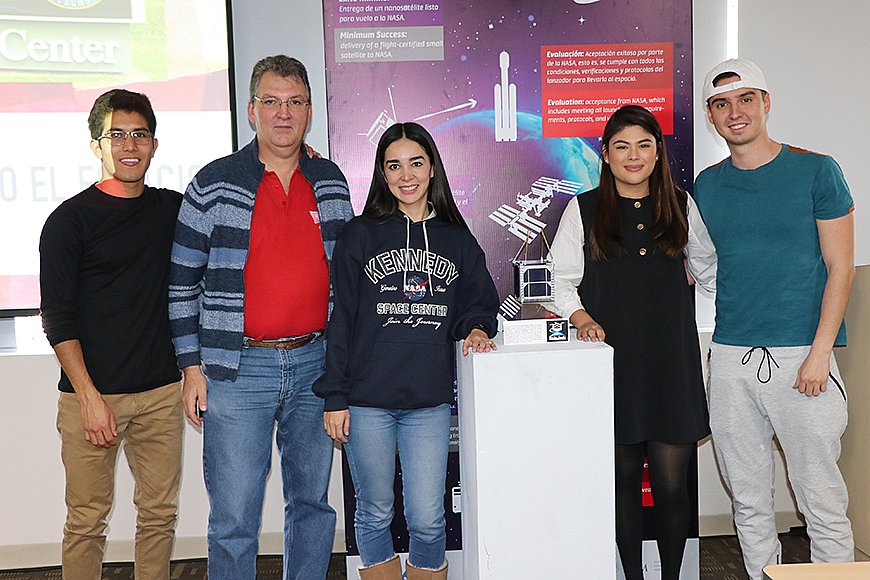 También se contó con la presencia de Rosa Reyna González Cancino, estudiante de Ingeniería Aeroespacial, quien compartió con los asistentes su experiencia como parte del equipo del proyecto del AztechSat-1.