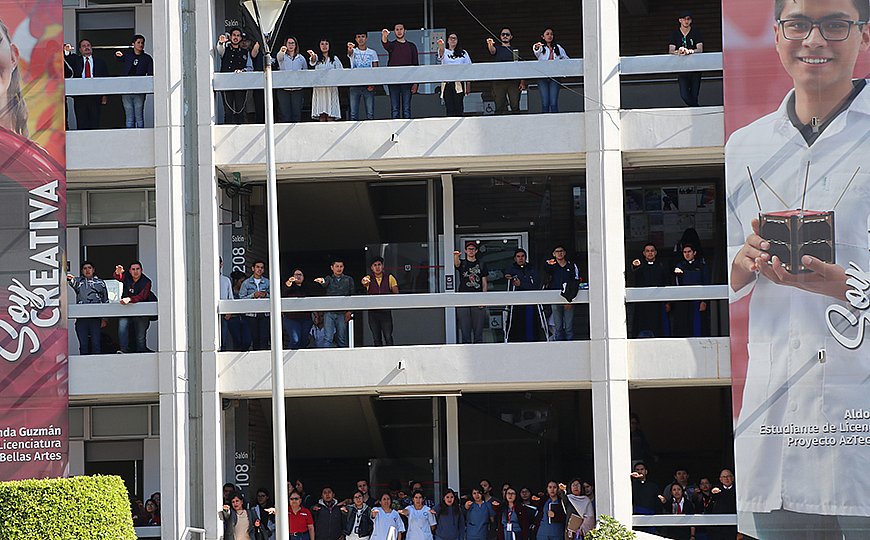 La dirección general de Formación Cultura y Liderazgo, a través de la dirección de Desarrollo Estudiantil, dio la bienvenida a los presentes en el acto cívico que se llevó a cabo en la explanada del campus el día 24 de febrero.